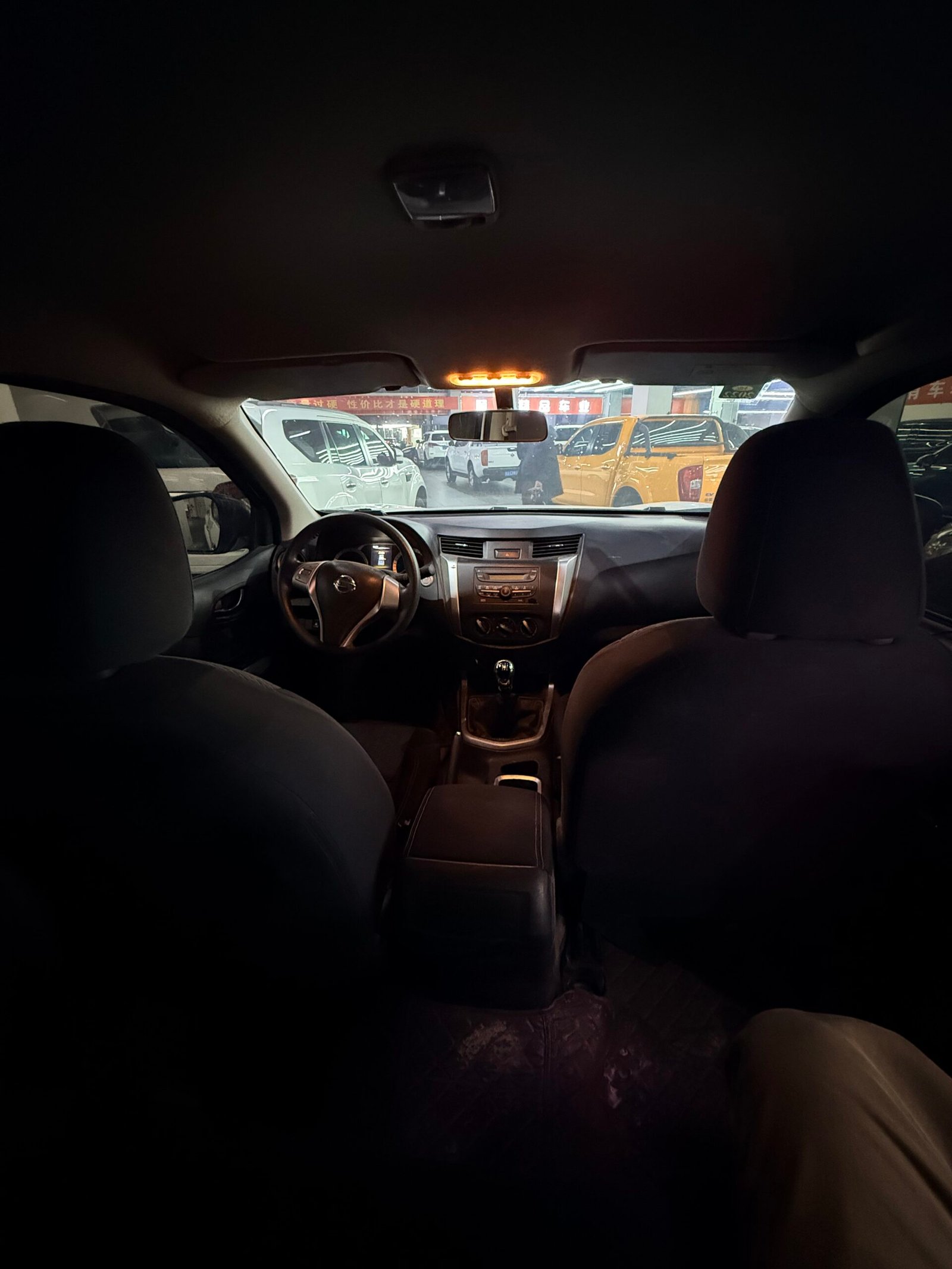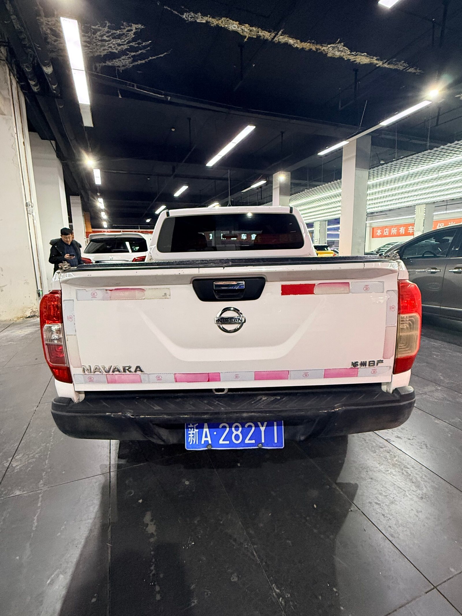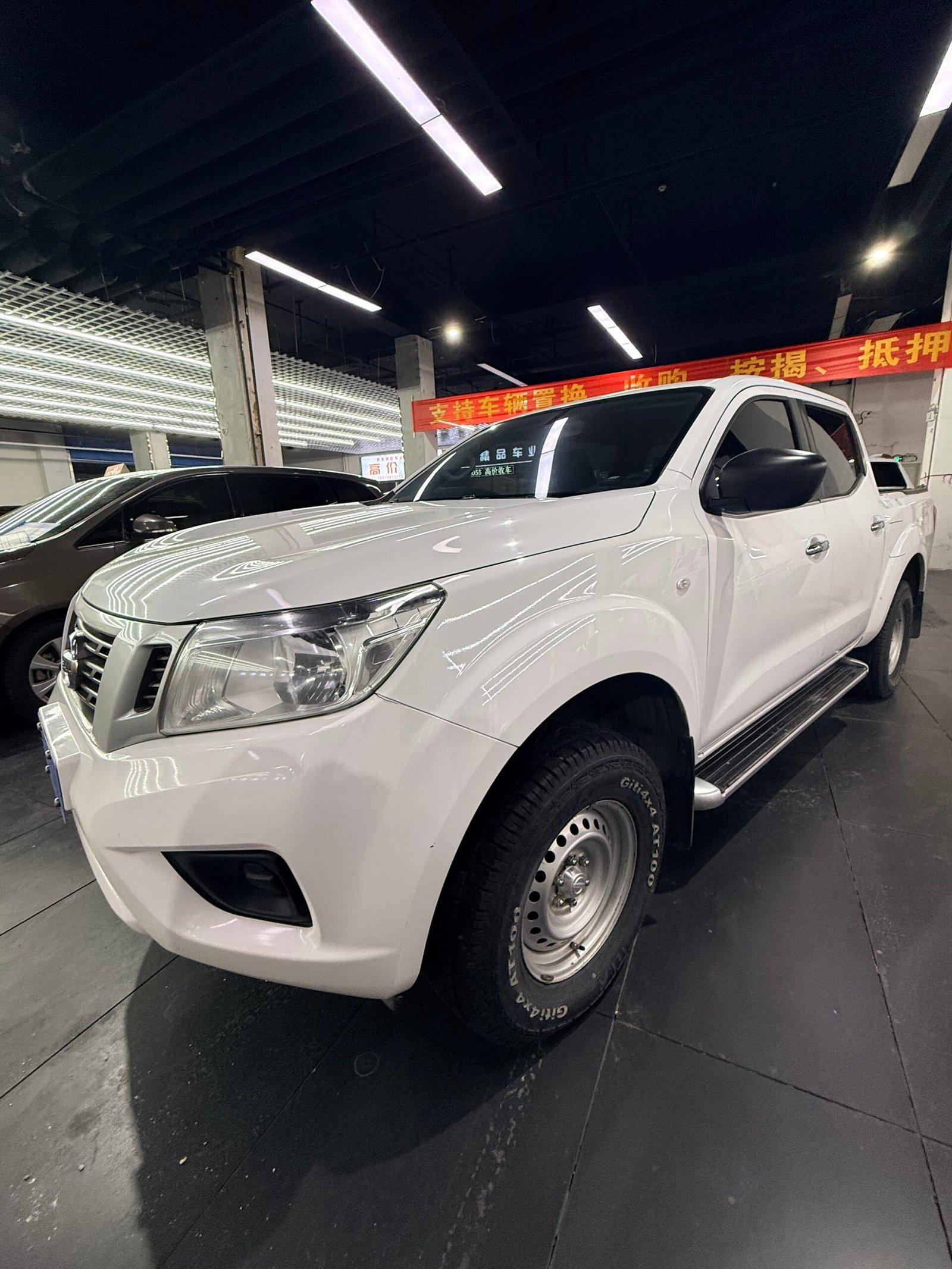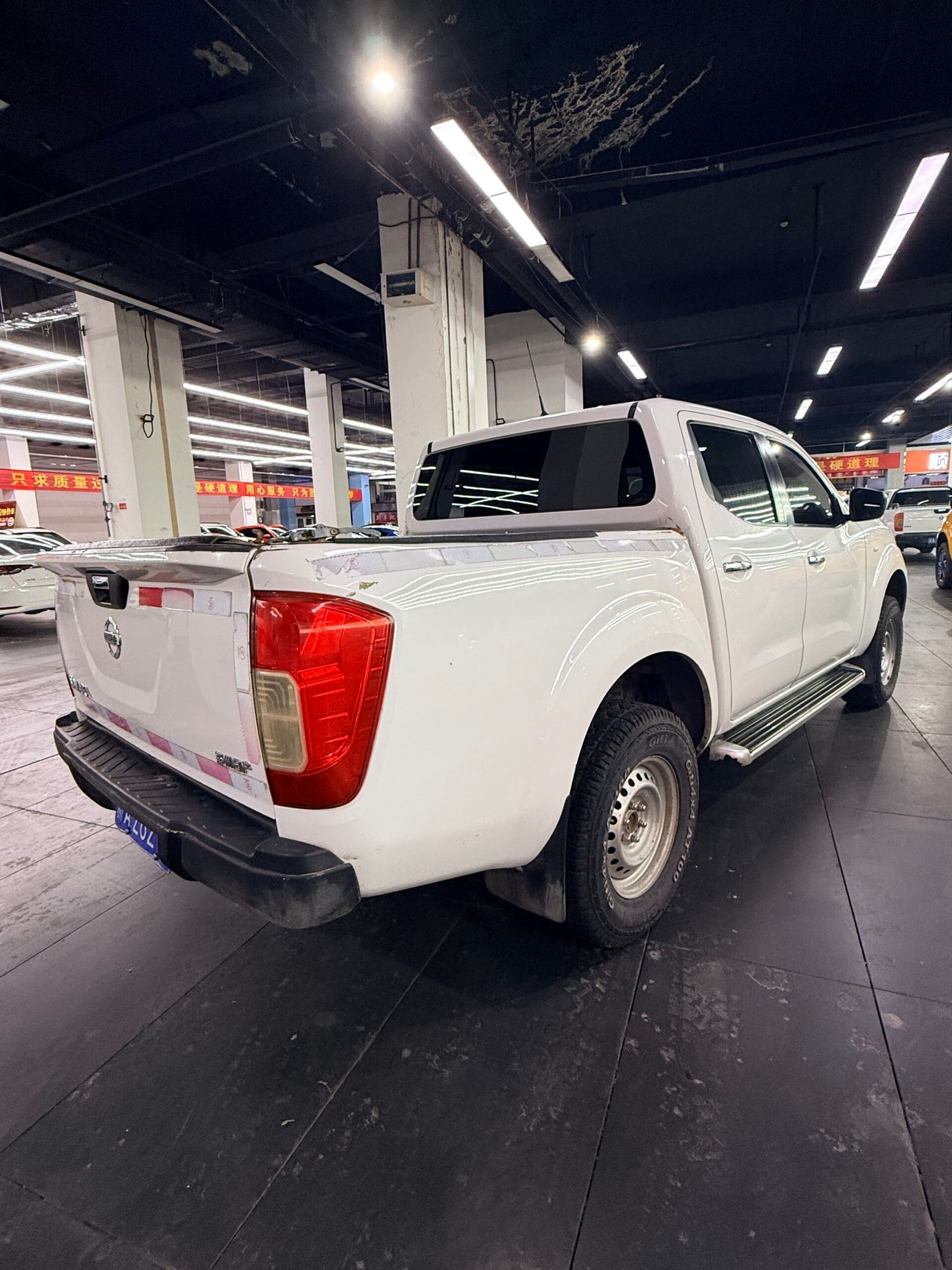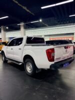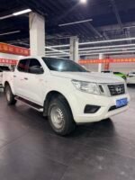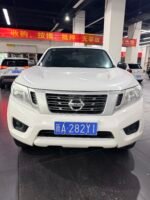This is a white second-hand Nissan Navara. The front face of the vehicle features Nissan’s signature V-motion grille with the Nissan logo embedded in the center. Paired with sharp front headlights, it presents a tough and imposing appearance.