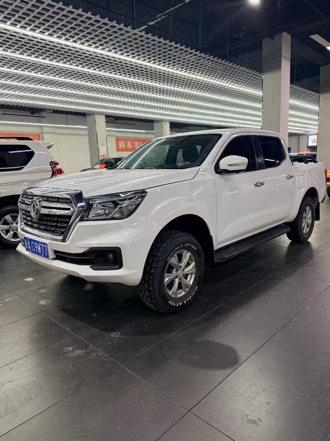 The front part of the vehicle boasts a tough and imposing design. The front face features a large-sized intake grille with the Dongfeng logo embedded in the center. Paired with sharp headlights, it exudes a powerful and majestic aura. The body lines are smooth yet full of strength, showcasing the rugged style unique to pickup trucks.